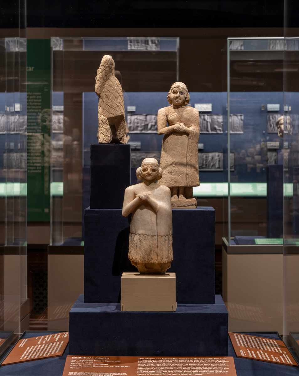 She Who Wrote: Enheduanna and Women of Mesopotamia, ca. 3400–2000 BC, installation view. Courtesy the Morgan Library & Museum. Pictured: kneeling female figure, Iran, proto-Elamite, Susa (modern Shush) Late Uruk period, ca. 3300 BC.