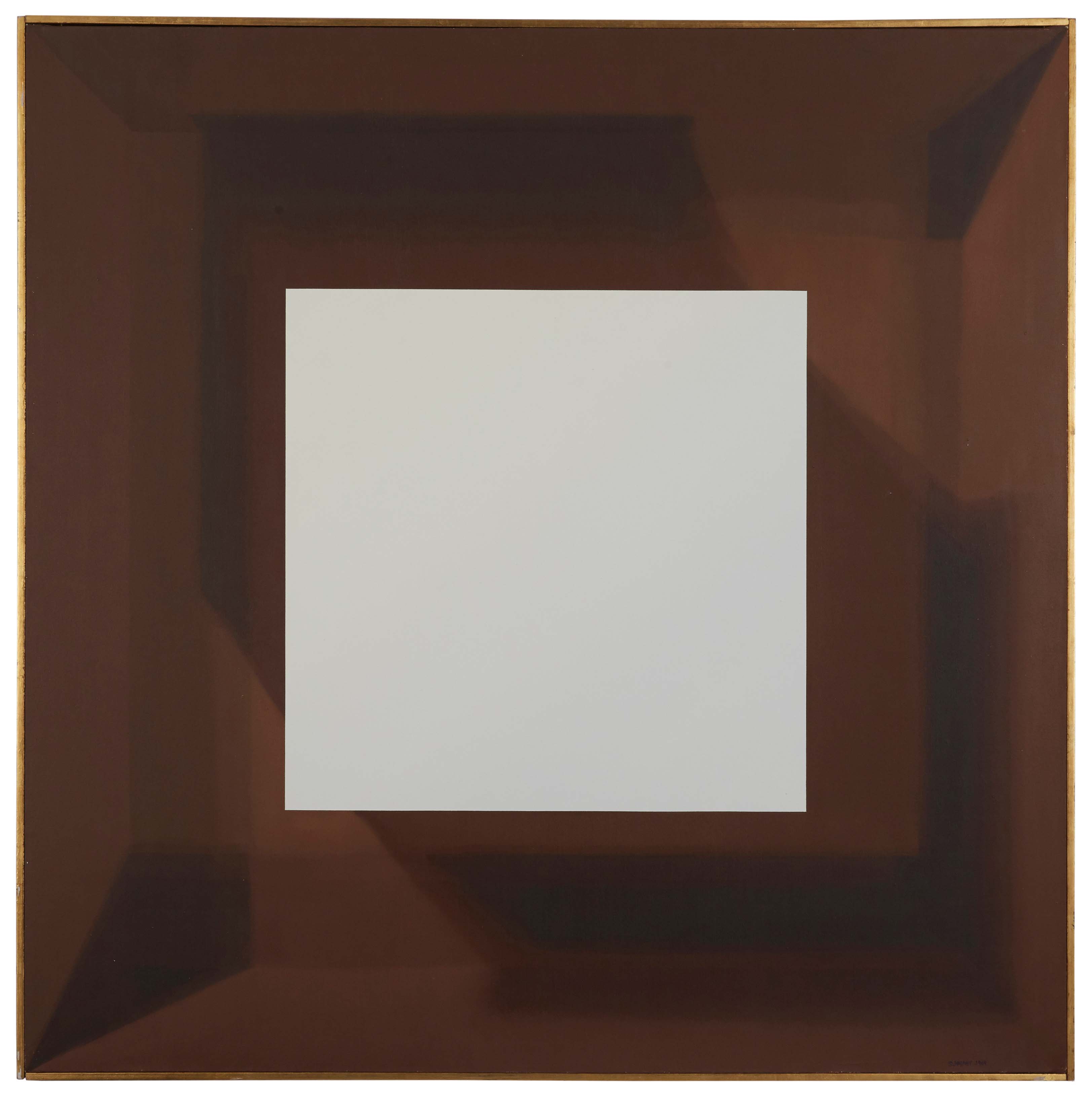 Samia Halaby, White Cube in Brown Cube, 1969. Oil on canvas, 48 × 48 inches. Image courtesy Barjeel Art Foundation.