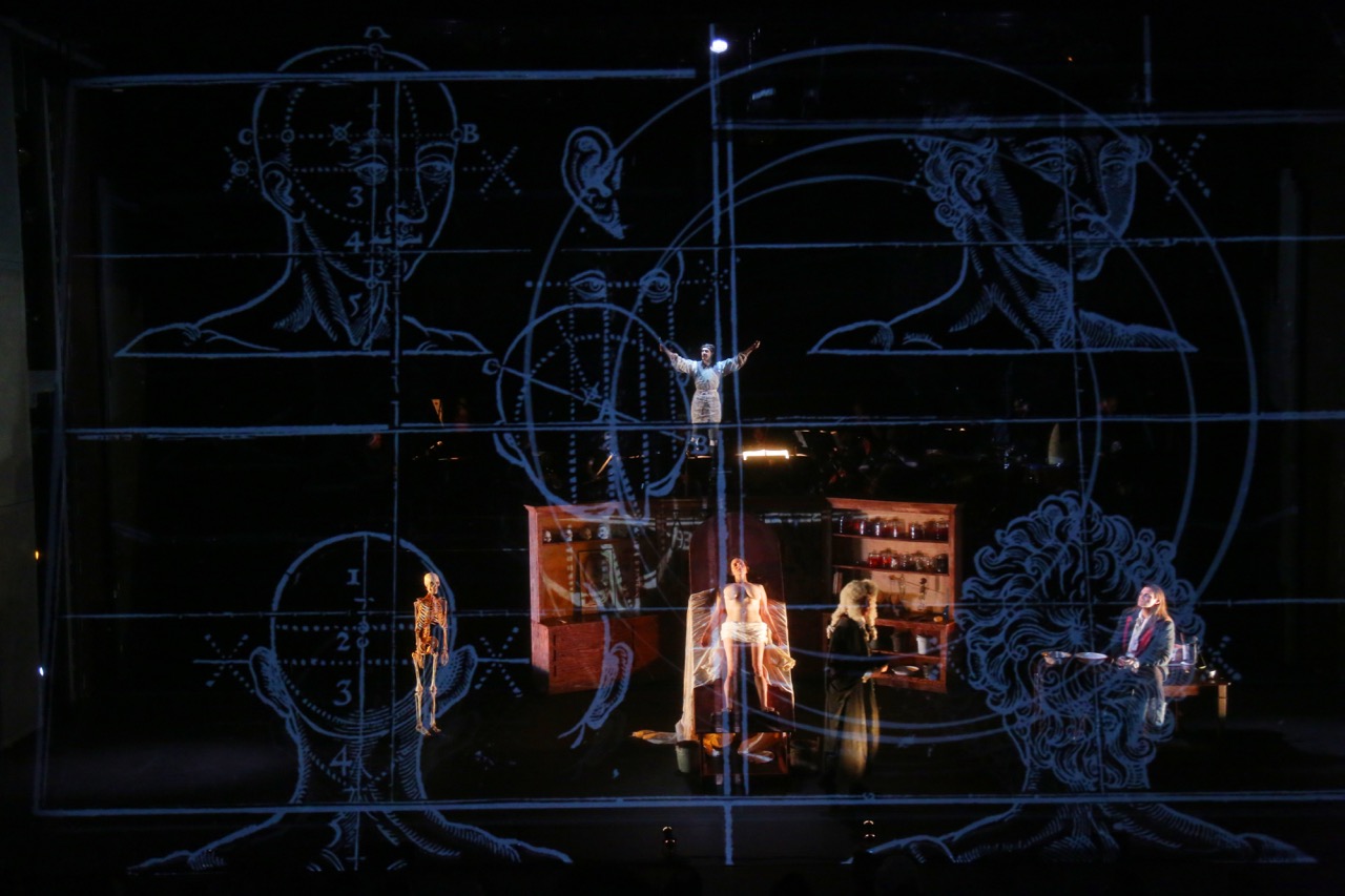 As for the music itself, it was in some ways uncharacteristic for Lang. He is notoriously self-effacing and his music can be egoless to a fault when it isn’t beautiful in that austerity. It was interesting, then, to hear such a pared-down post-minimalism put in the service of unabashed musical theater, where restraint so often goes to die. It largely worked. Minor-key ostinatos flirted with a kind of neo-baroque restlessness that complemented the powdered wigs and search for black bile. A chamber ensemble, led by Christopher Rountree and made up of members from the International Contemporary Ensemble, played it all with appropriately surgical precision.